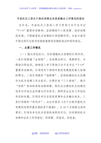 / 市直机关工委关于推动党建业务深度融合工作情况的报告