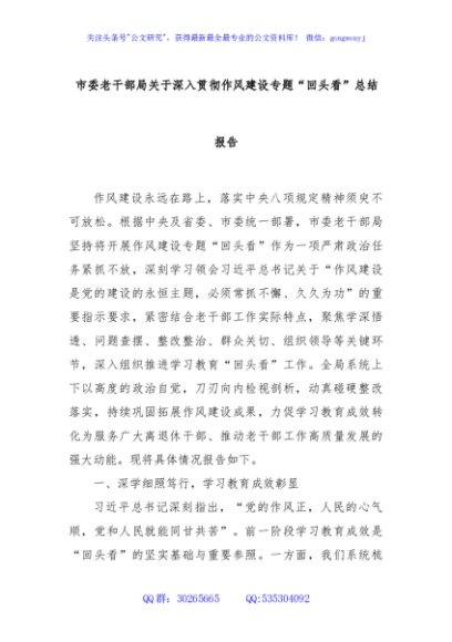 / 市委老干部局关于深入贯彻作风建设专题“回头看”总结报告