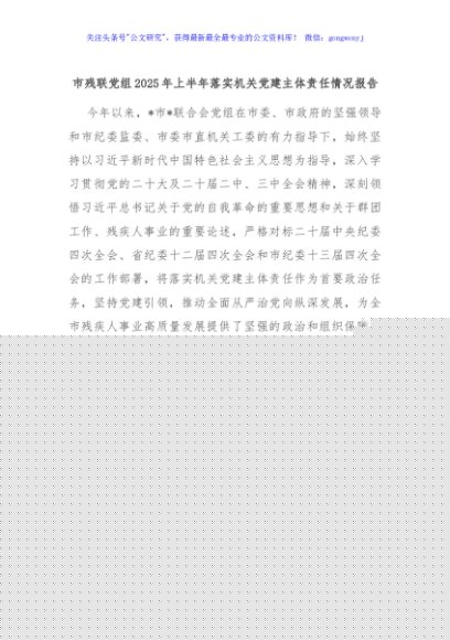 / 市残联党组2025年上半年落实机关党建主体责任情况报告