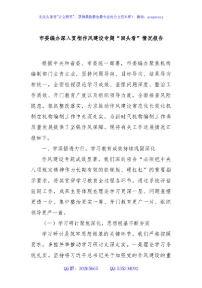 / 市委编办深入贯彻作风建设专题“回头看”情况报告