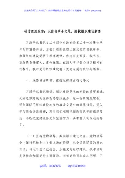 / 研讨交流发言:以自我革命之笔,绘就组织建设新篇(市委常委、秘书长)