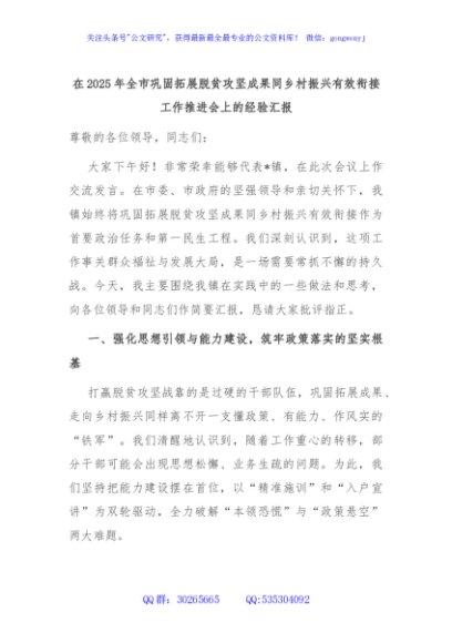 / 在2025年全市巩固拓展脱贫攻坚成果同乡村振兴有效衔接工作推进会上的经验汇报