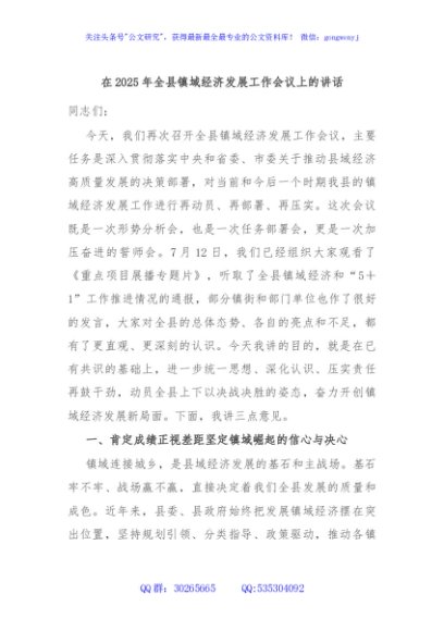 / 在2025年全县镇域经济发展工作会议上的讲话