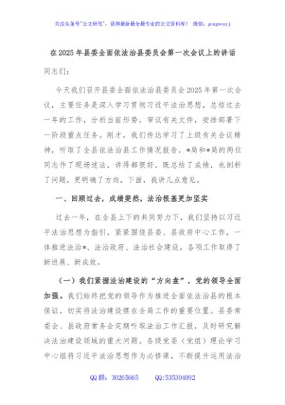 / 在2025年县委全面依法治县委员会第一次会议上的讲话