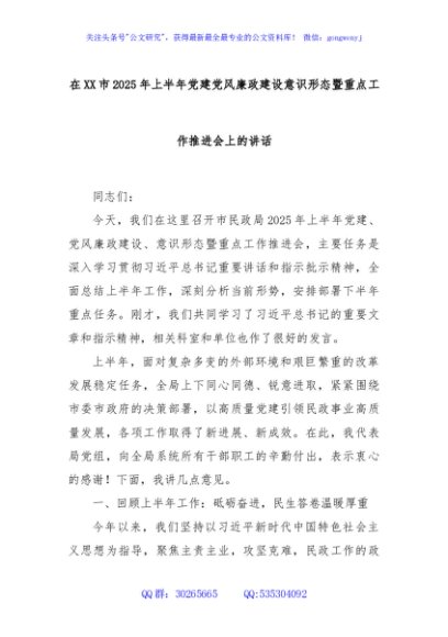/ 在XX市2025年上半年党建党风廉政建设意识形态暨重点工作推进会上的讲话