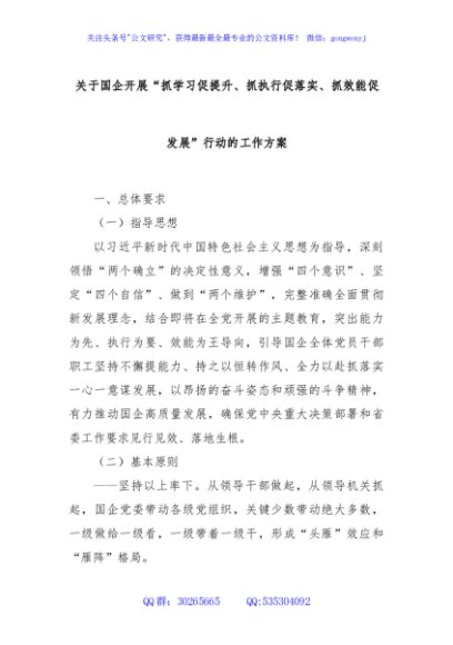 / 关于国企开展“抓学习促提升、抓执行促落实、抓效能促发展”行动的工作方案