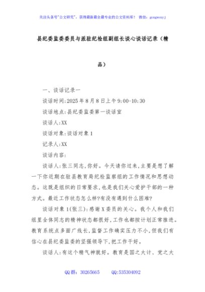 / 县纪委监委委员与派驻纪检组副组长谈心谈话记录(精品)