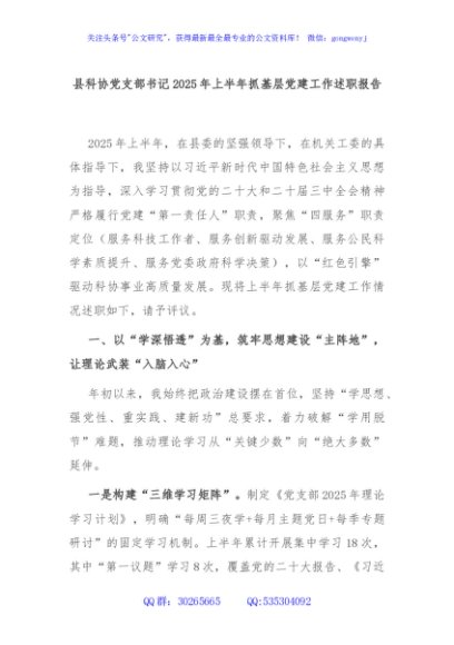 / 县科协党支部书记2025年上半年抓基层党建工作述职报告
