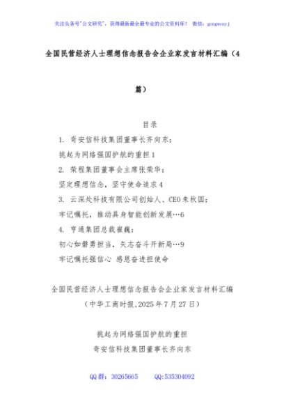 (4篇)全国民营经济人士理想信念报告会企业家发言材料汇编