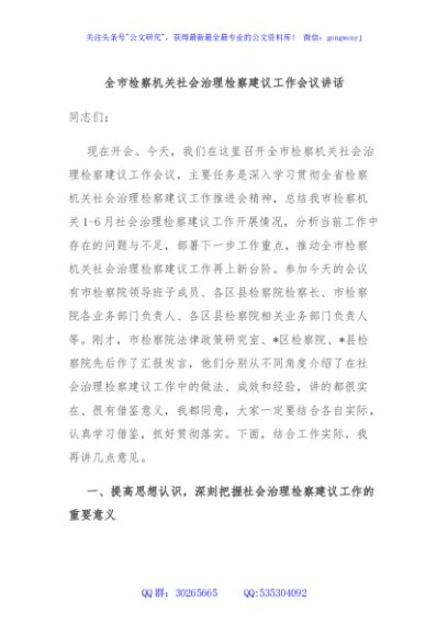 / 全市检察机关社会治理检察建议工作会议讲话