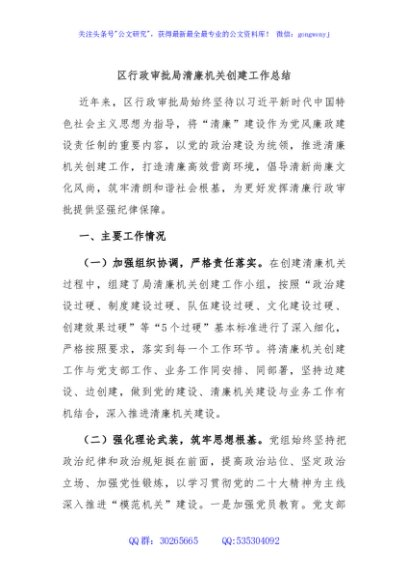 / 区行政审批局清廉机关创建工作总结