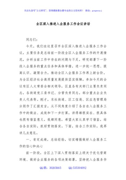 / 全区深入推进入企服务工作会议讲话