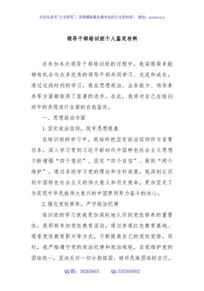 / 领导干部培训班个人鉴定材料