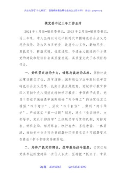 / 镇党委书记三年工作总结
