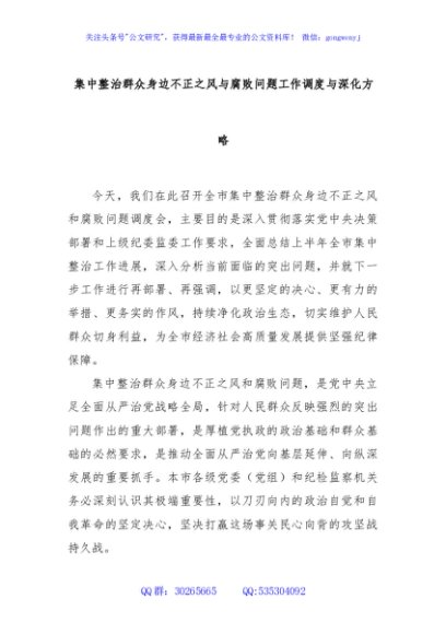 / 集中整治群众身边不正之风与腐败问题工作调度与深化方略