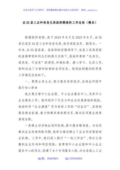 / 在XX县工业和信息化局挂职锻炼的工作总结(精品)
