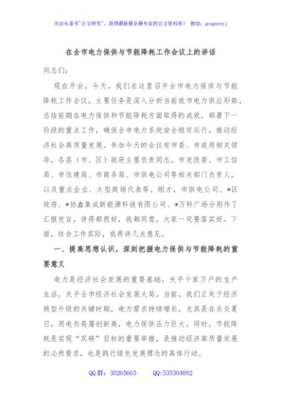 / 在全市电力保供与节能降耗工作会议上的讲话