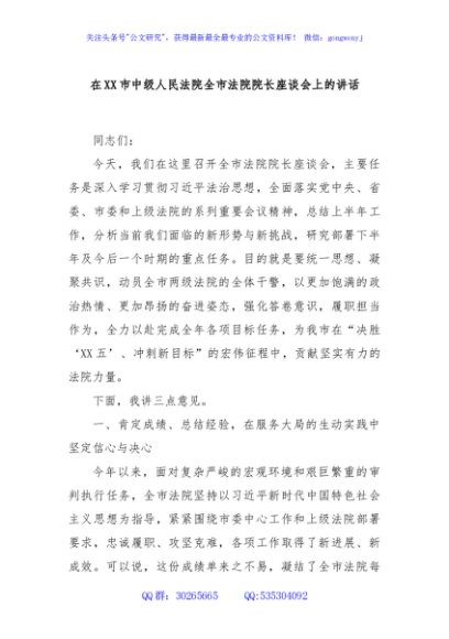/ 在XX市中级人民法院全市法院院长座谈会上的讲话
