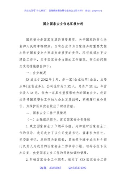 / 国企国家安全信息汇报材料