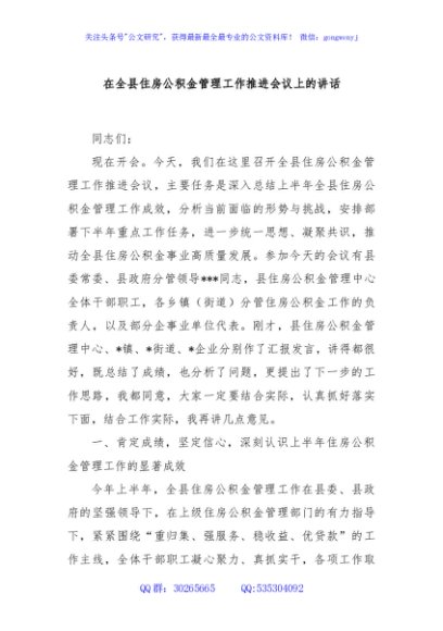 / 在全县住房公积金管理工作推进会议上的讲话