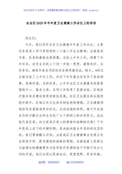 / 在全区2025年半年度卫生健康工作会议上的讲话