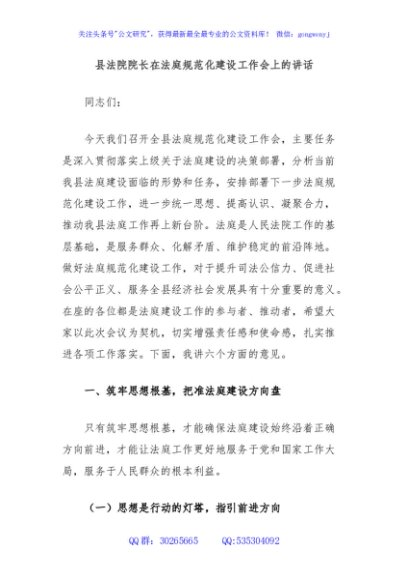 / 县法院院长在法庭规范化建设工作会上的讲话