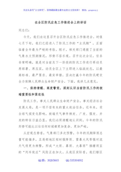 / 在全区防汛应急工作推进会上的讲话