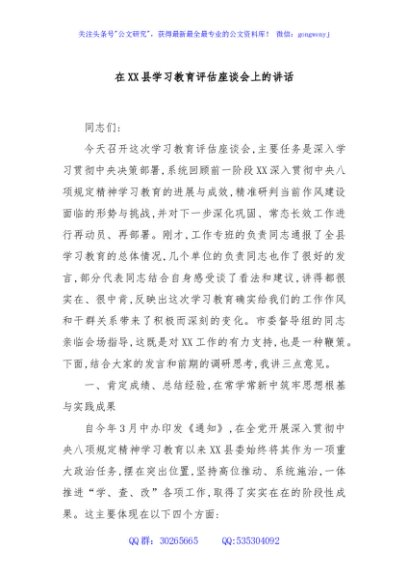 / 在XX县学习教育评估座谈会上的讲话