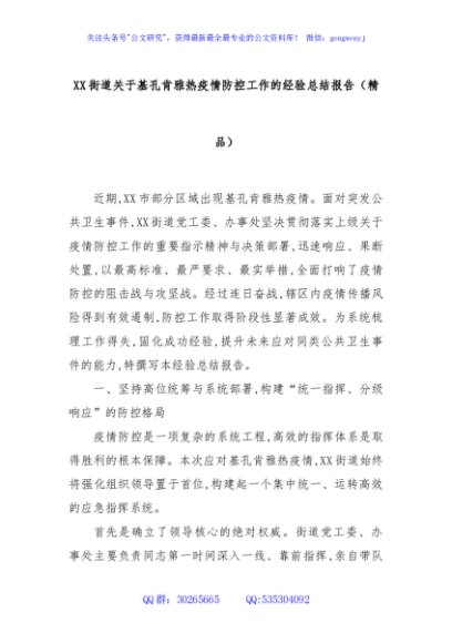 / XX街道关于基孔肯雅热疫情防控工作的经验总结报告(精品)