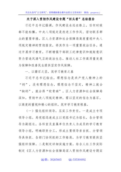 / 关于深入贯彻作风建设专题“回头看”总结报告