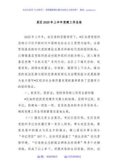 / 某区2025年上半年党建工作总结