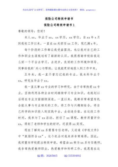 / 保险公司转岗申请书