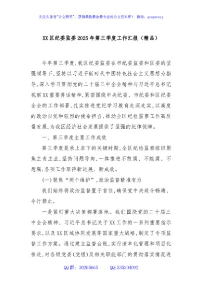 / XX区纪委监委2025年第三季度工作汇报(精品)