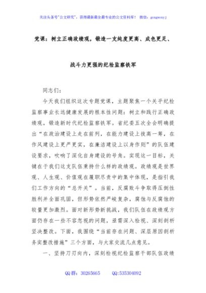 / 党课:树立正确政绩观,锻造一支纯度更高、成色更足、战斗力更强的纪检监察铁军