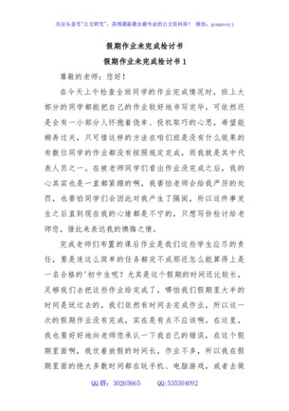 / 假期作业未完成检讨书