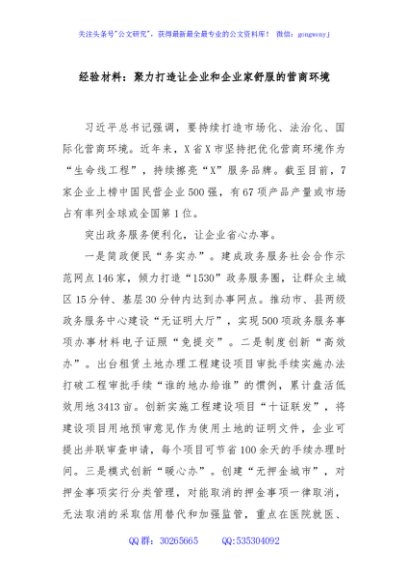 / 经验材料:聚力打造让企业和企业家舒服的营商环境