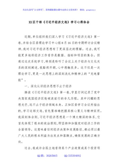 / XX区干部《习总书记经济文选》学习心得体会