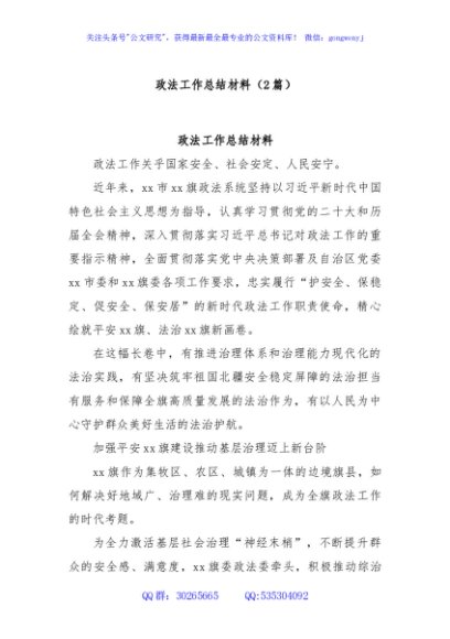 (2篇)政法工作总结材料