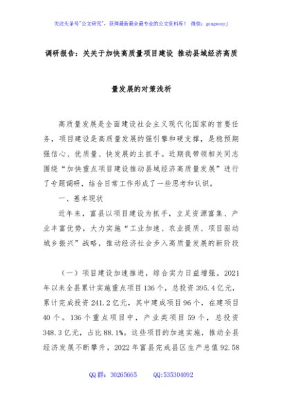 / 调研报告:关关于加快高质量项目建设 推动县域经济高质量发展的对策浅析