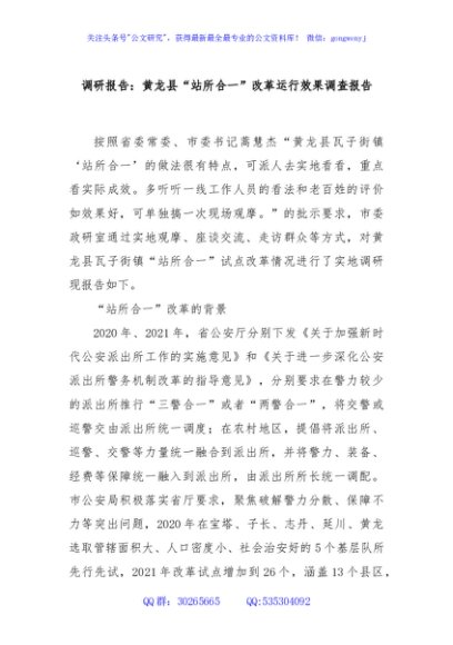 / 调研报告:黄龙县“站所合一”改革运行效果调查报告