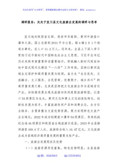 / 调研报告:关关于宜川县文化旅游业发展的调研与思考