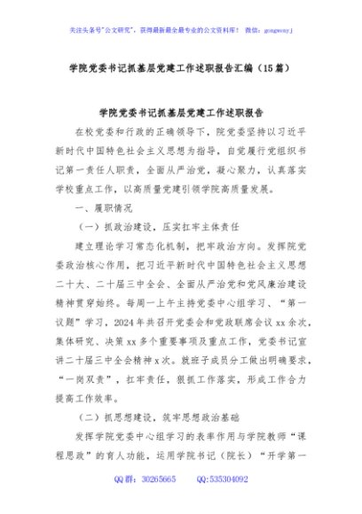 / (15篇)学院党委书记抓基层党建工作述职报告汇编