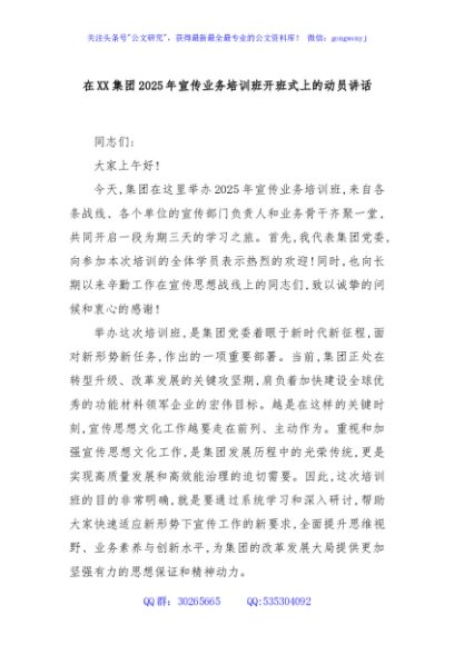 / 在XX集团2025年宣传业务培训班开班式上的动员讲话