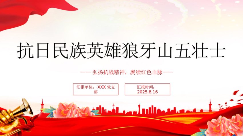 / 纪念抗日民族英雄狼牙山五壮士PPT党课课件
