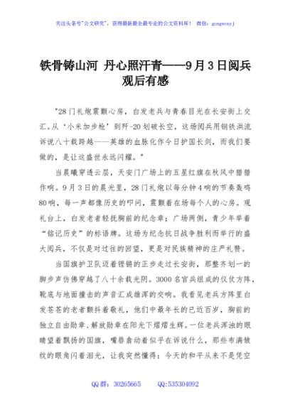 铁骨铸山河 丹心照汗青——9月3日阅兵观后有感
