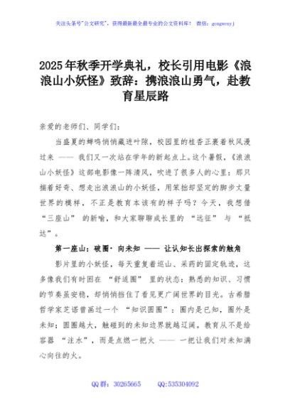 / 2025年秋季开学典礼,校长引用电影《浪浪山小妖怪》致辞:携浪浪山勇气,赴教育星辰路