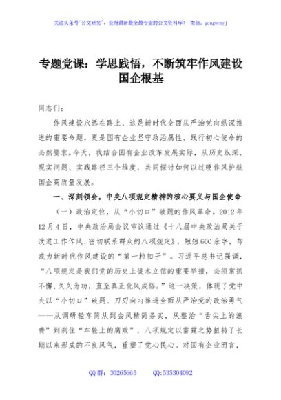 / 专题党课:学思践悟,不断筑牢作风建设国企根基