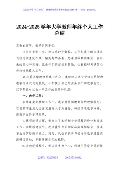 / 2024-2025学年大学教师年终个人工作总结