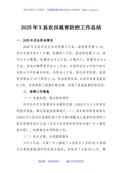 / 2025年X县农田鼠害防控工作总结