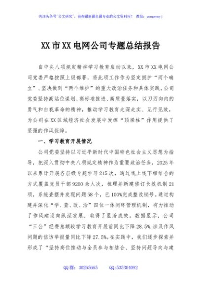 XX市XX电网公司专题总结报告